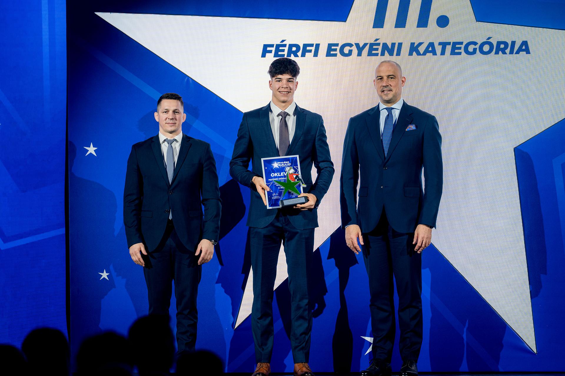 Egyéni sportágak férfi csapata kategóriában a Juhász István Dávid, Kollár Kristóf páros érdemelte ki az első helyezettnek járó elismerést, akik C-2 500 méteren bronzérmet szereztek a milánói felnőtt kajak-kenu vb-n. Mivel a srácok, valamint edzőjük, Bedecs Ferenc is San Diegóban tartózkodik edzőtáborban, a díjat Szakács Bálint, a Magyar Kajak-Kenu Szövetség főtitkára vette át.