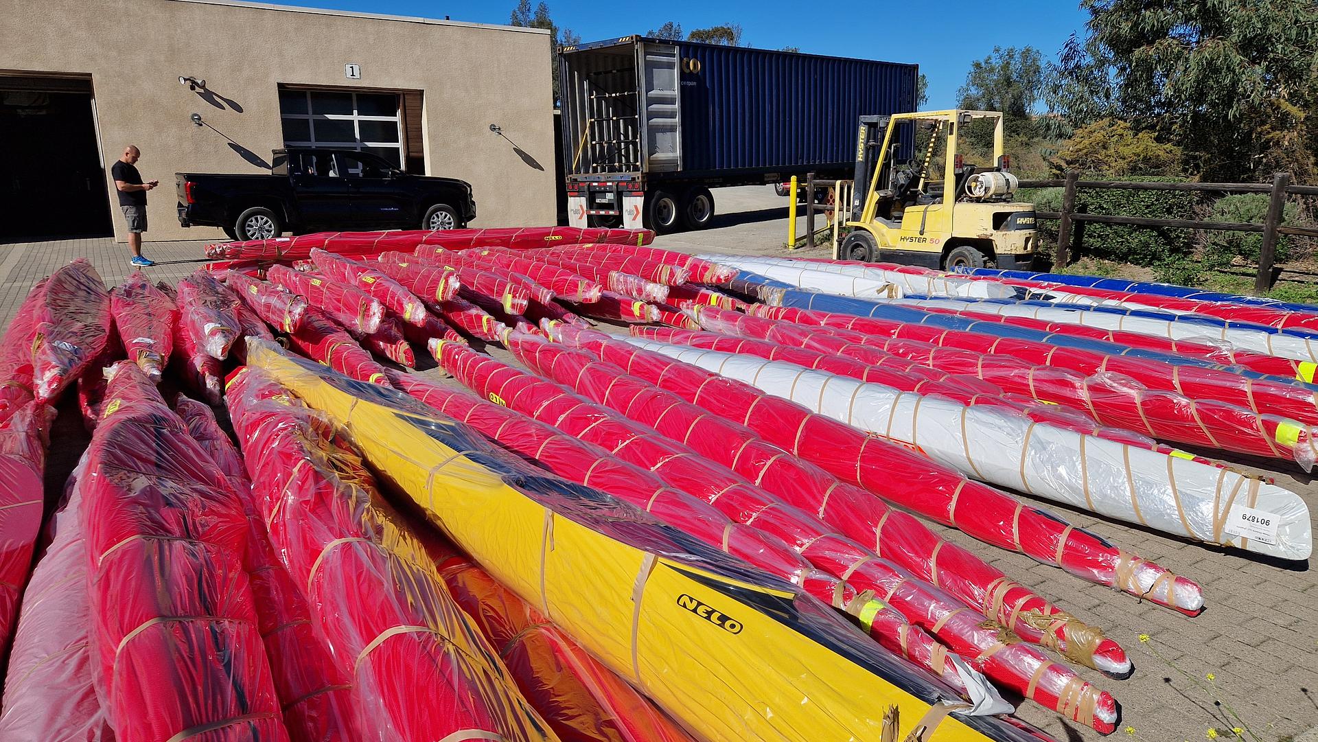 A nagy távolság, a bonyolult utaztatás, illetve a hajók sértetlen állapotának megőrzése miatt a hajók leszállítása komoly szervezést és összpontosítást igényelt, melynek végeztével a hivatalos átadás-átvételre január 21-én került sor. Az edzőközpontban elhelyezett konténerben 24 kajak egyes, 16 kenu egyes, illetve 4-4 kajak- és kenupáros hajó pihen.